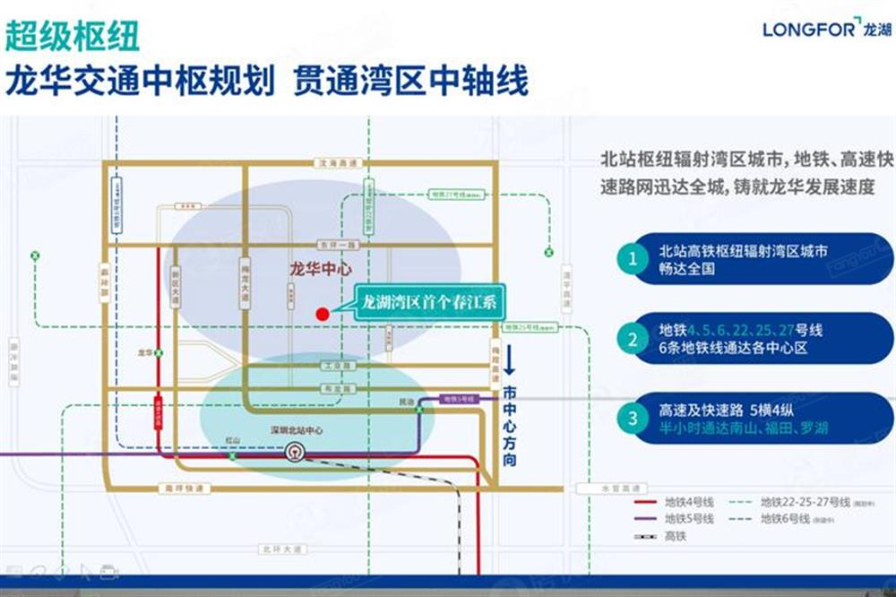 超配套:灣區交通中軸 / 城市頂級配套 全國最大高鐵樞紐——深圳北站,4/5/6號線地鐵串聯全市,規劃中22/25/27號線地鐵私享;項目三公里內盡享深圳最大美術館(在建),市第二圖書館(在建),音樂公園、龍華文化藝術中心、龍華文化體育中心(在建)、龍華文化廣場等頂級配套