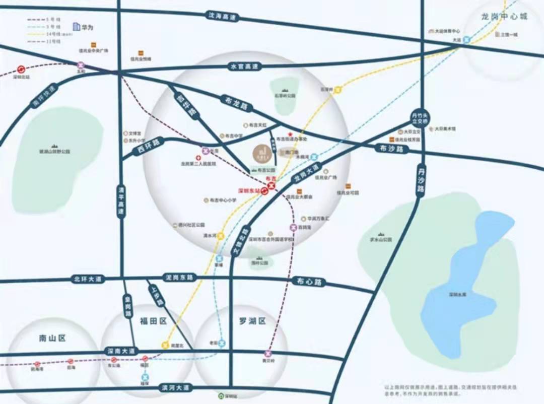 3地鐵:項(xiàng)目距離3、5、14(在建預(yù)計(jì)明年通車)號(hào)線匯聚的布吉站直線距離約500m,距離5號(hào)線長龍站直線距離約600m。實(shí)現(xiàn)無縫接駁羅湖、福田、南山、寶安核心區(qū)。