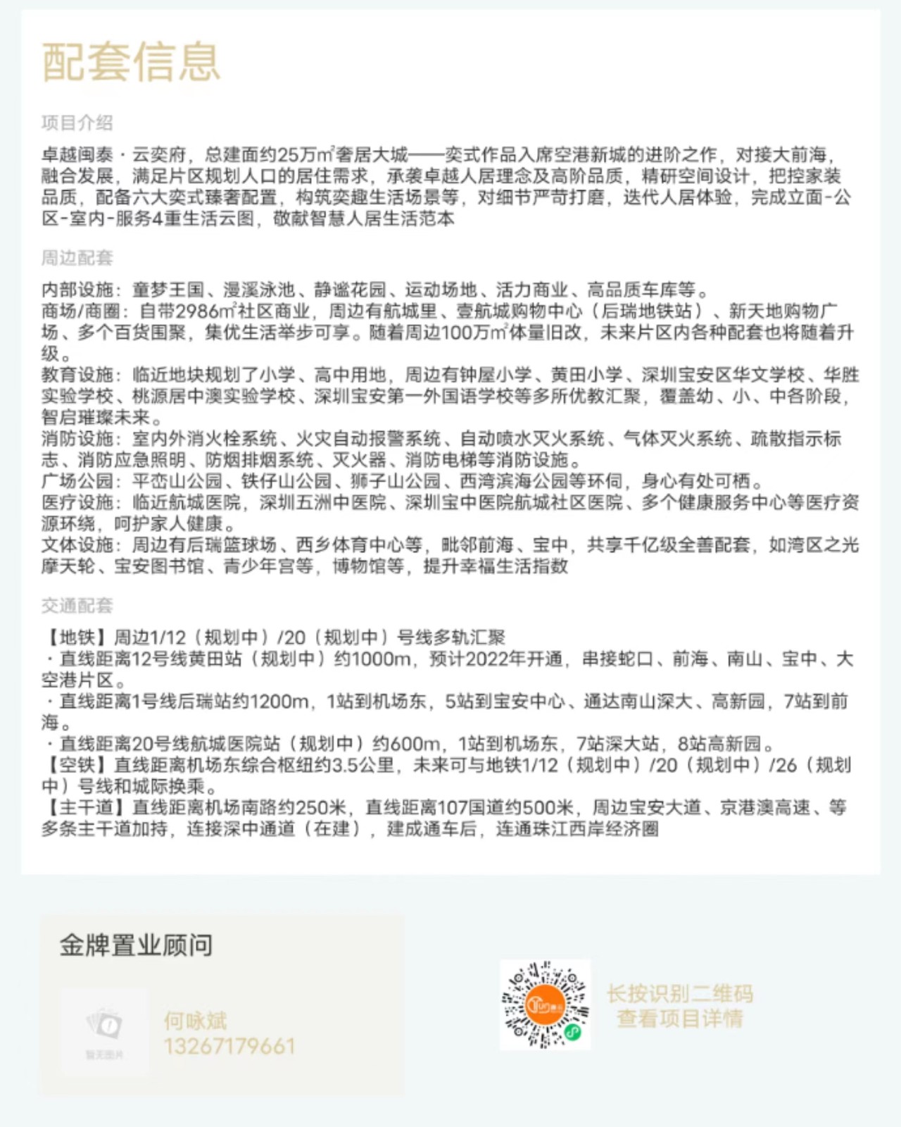 樓盤:卓越閩泰云奕府物業類型:普通住宅戶型:3室、4室面積:約85-110平米總價:約480-690萬聯系人:何詠斌聯系電話:13267179661